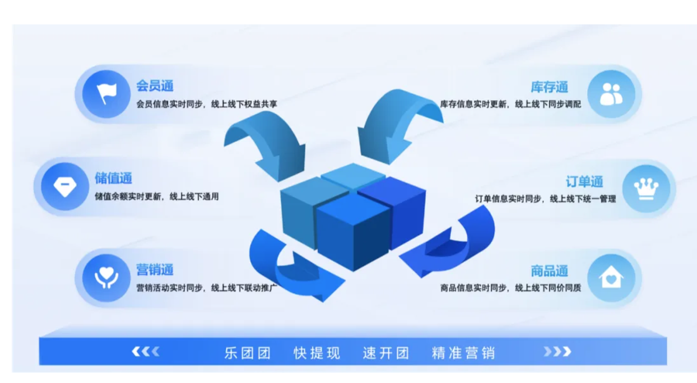 乐团团实现数据通、库存通、会员通,打破线上线下壁垒。库存同步,避免缺货超卖,同时线上引流线下转化无缝连接,助力门店提高流量转化率,增强顾客忠诚度和复购率。线上线下联动,流量倍增,顾客留存更长久!
