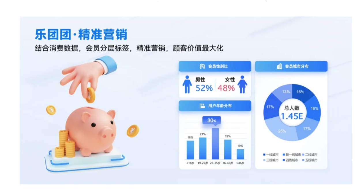 乐团团自带全渠道会员系统,通过消费数据与用户画像、标签结合,帮助企业精准洞察用户需求,会员分层标签(如新客、高净值用户、沉睡客户等),提升营销精准度。精确营销,顾客价值最大化!