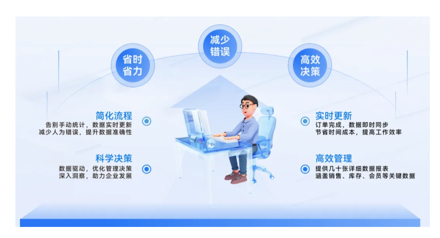 告别手动统计的烦恼。每当订单完成,数据实时更新,有效减少人为错误和时间成本。同时后台提供几十张详细的数据报表,包括销售、库存、会员等各项数据,帮助您更好地管理企业,做出更科学的决策。自动化数据统计,提升效率,告别繁琐!