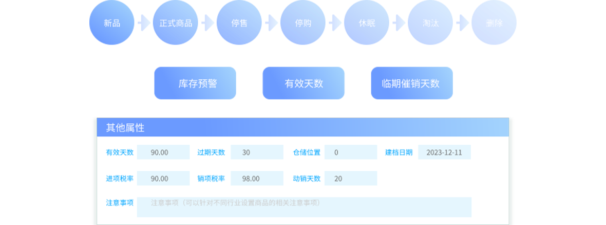 可设定商品保质/库存预警/临期催销天数, 精准管理商品有效期