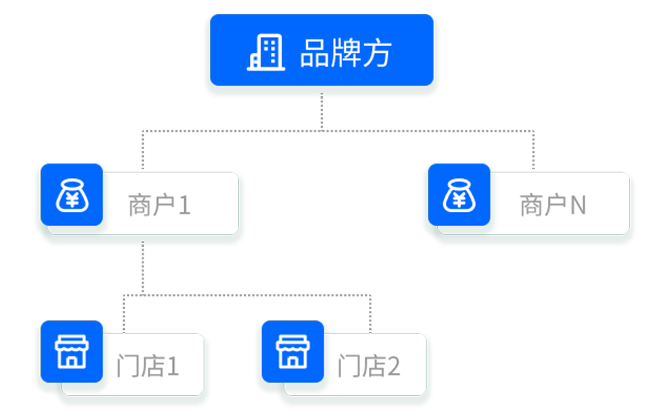 支持个体商户、法人商户、连锁商户、加盟商户多种商户类型。支持总部直接收款再向门店结算,也支持门店分别独立收款,可按具体业务架构管理区分,支持更多层级拓展